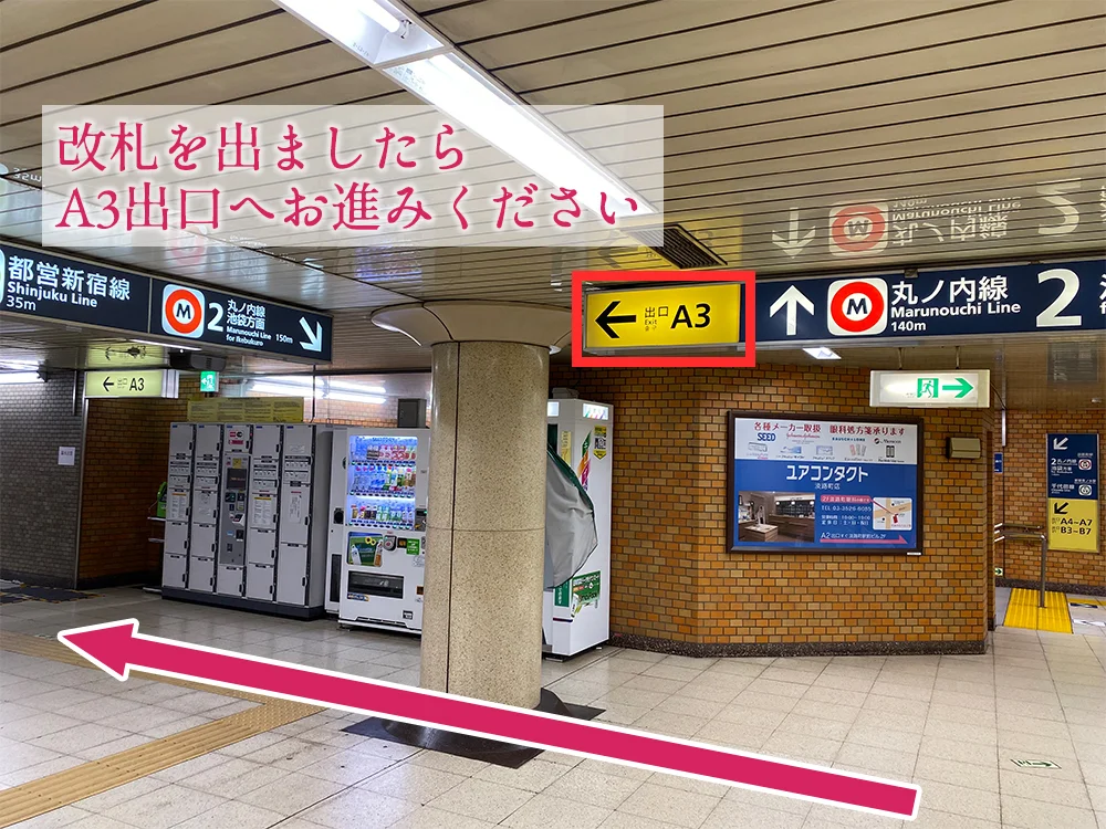 改札を出ましたら、A3出口へお進みください