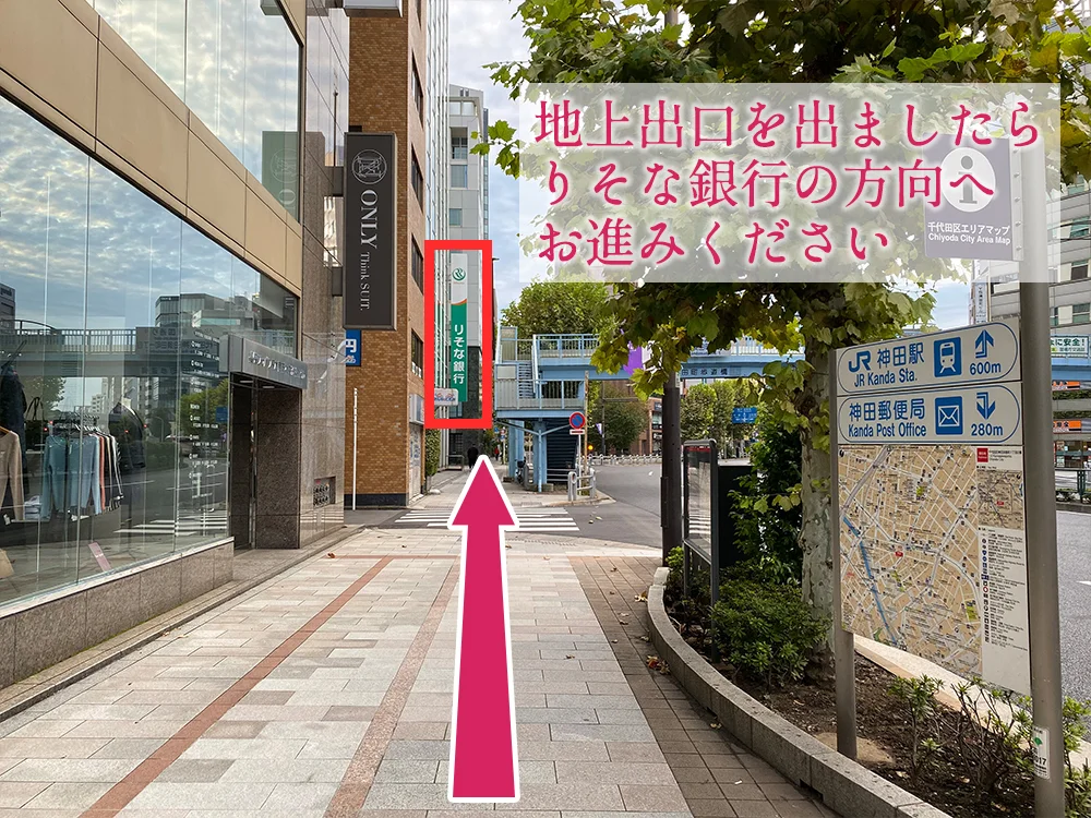 「りそな銀行」の看板の方向へお進みください。