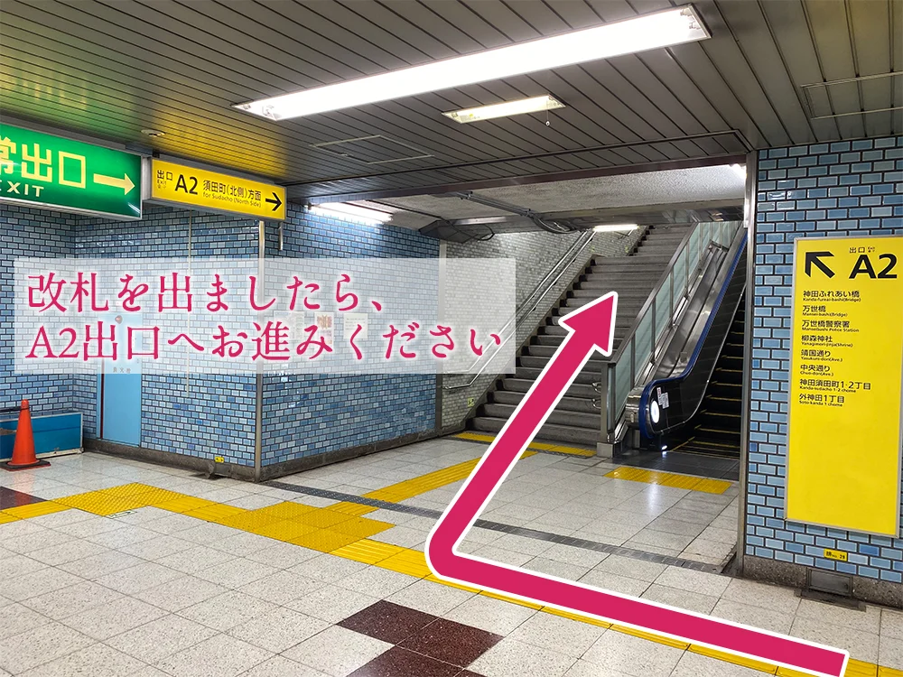 A2出口(須田町北側方面)へお進みください。
